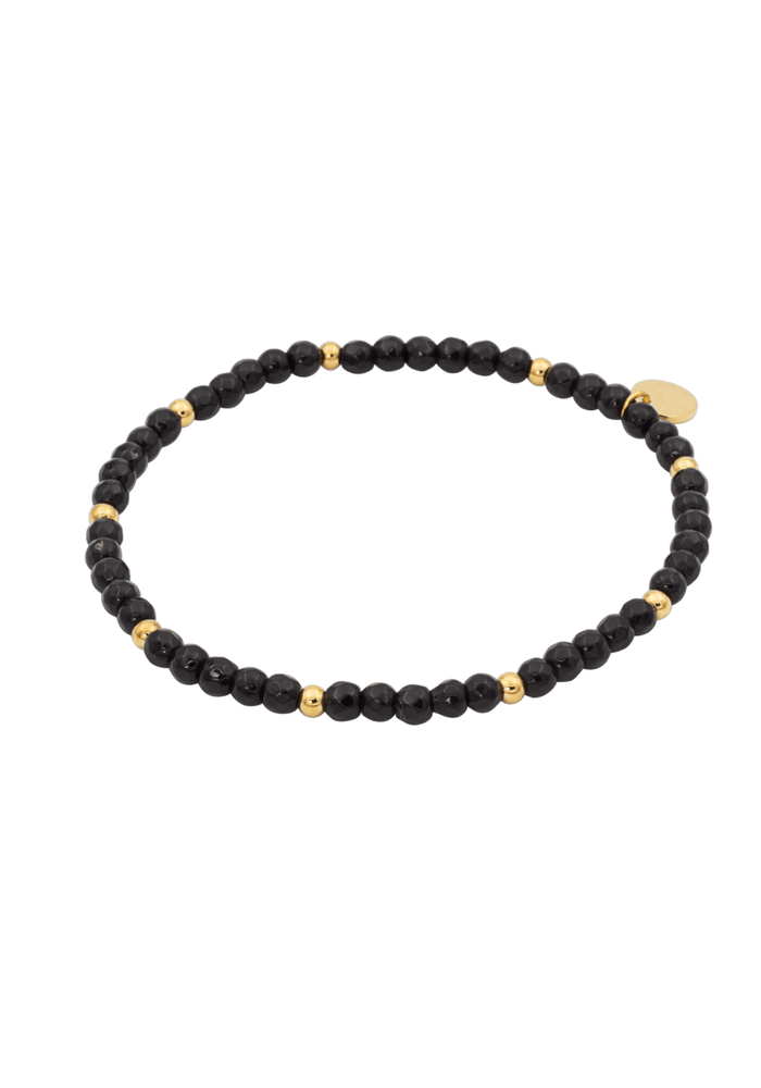 De Wietske armband combineert zwarte kralen met subtiele gouden details voor een chique, tijdloze uitstraling.