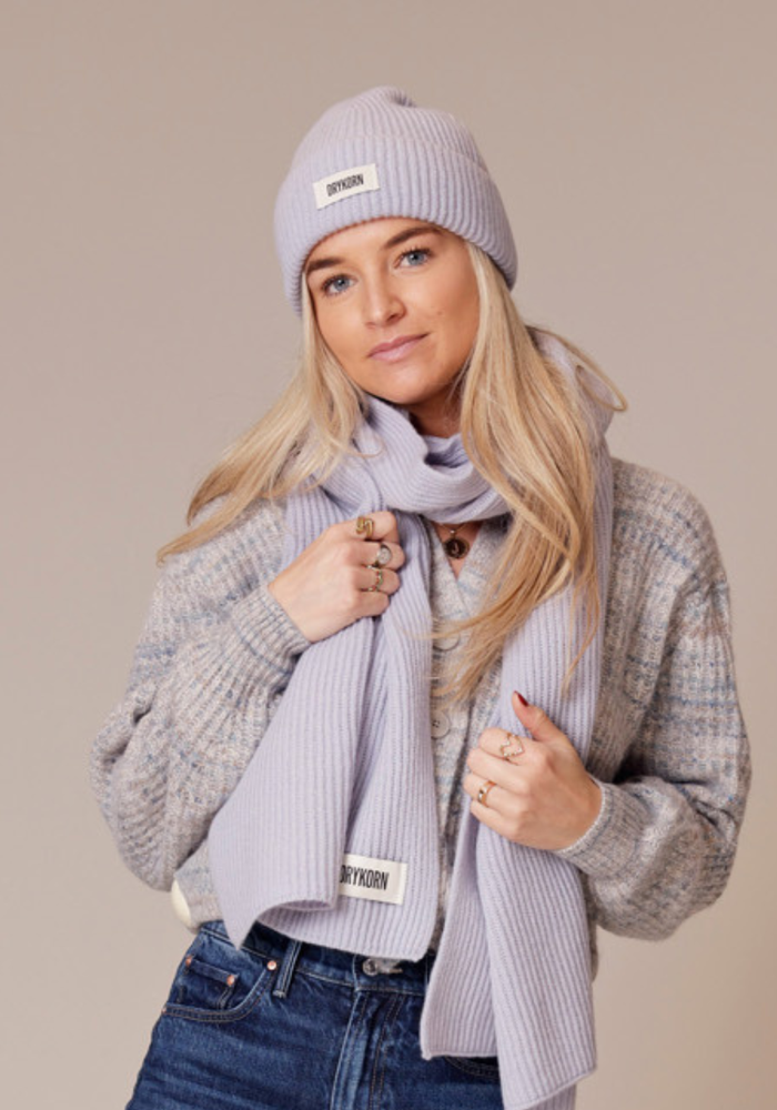 De Drykorn Nerea muts is een stijlvolle essential voor koude dagen, gemaakt van een zachte, grofgebreide stof die comfortabel en warm aanvoelt. De subtiele lavendelkleur en het logo op de voorzijde zorgen voor een moderne, minimalistische look. Perfect te combineren met de bijpassende sjaal voor een trendy, gecoördineerde winterset.