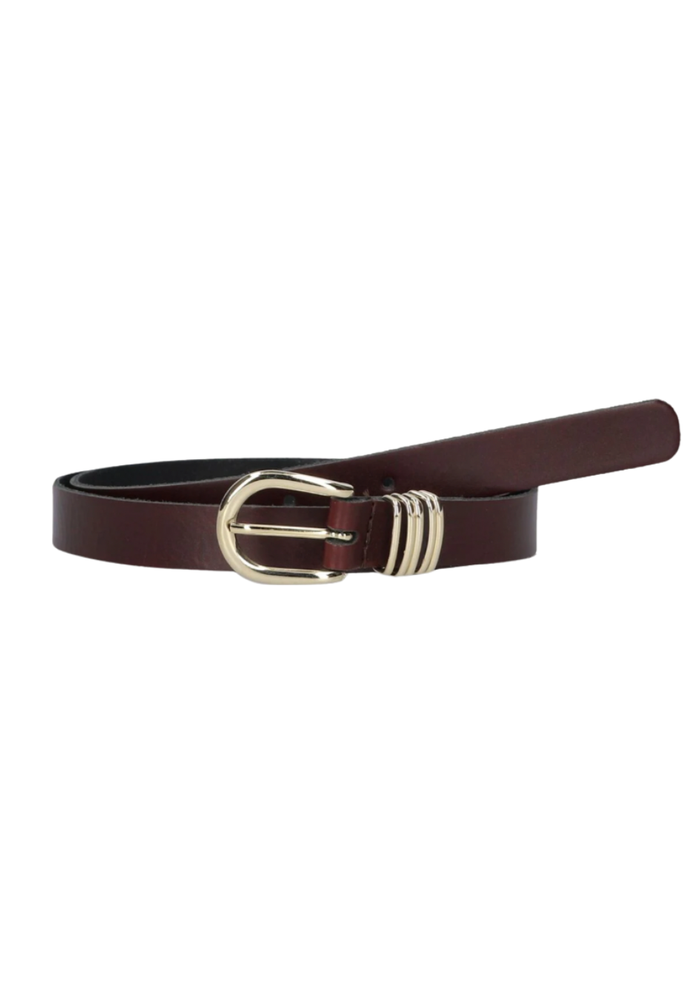 De Minnesota belt van Elvy is een bordeaux rode riem met gouden gesp. Deze riem is eindeloos te combineren.
