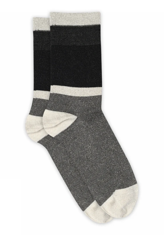 De Elisabeth socks van MP socks zijn glittersokken in een zachte bamboeviscosekwaliteit. De sokken hebben een colourblock-effect in de mooiste kleuren en een zachte, comfortabele elastische band aan de bovenkant.