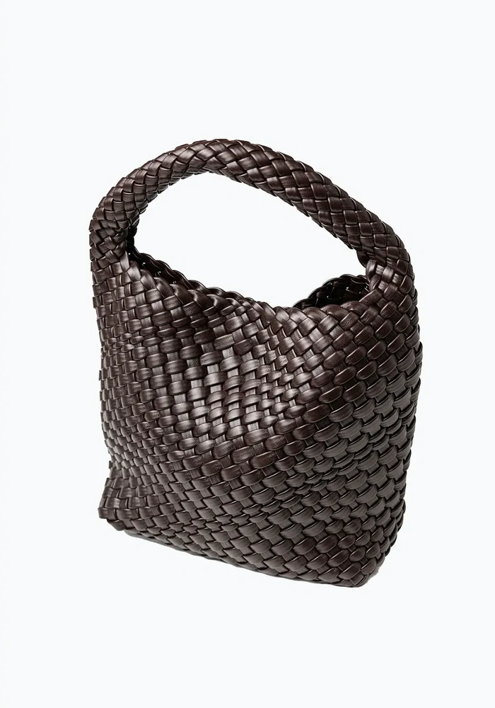 De Mia bag van BOW19 is een gevlochten tas van imitatieleer. De tas wordt geleverd met lang hengsel.