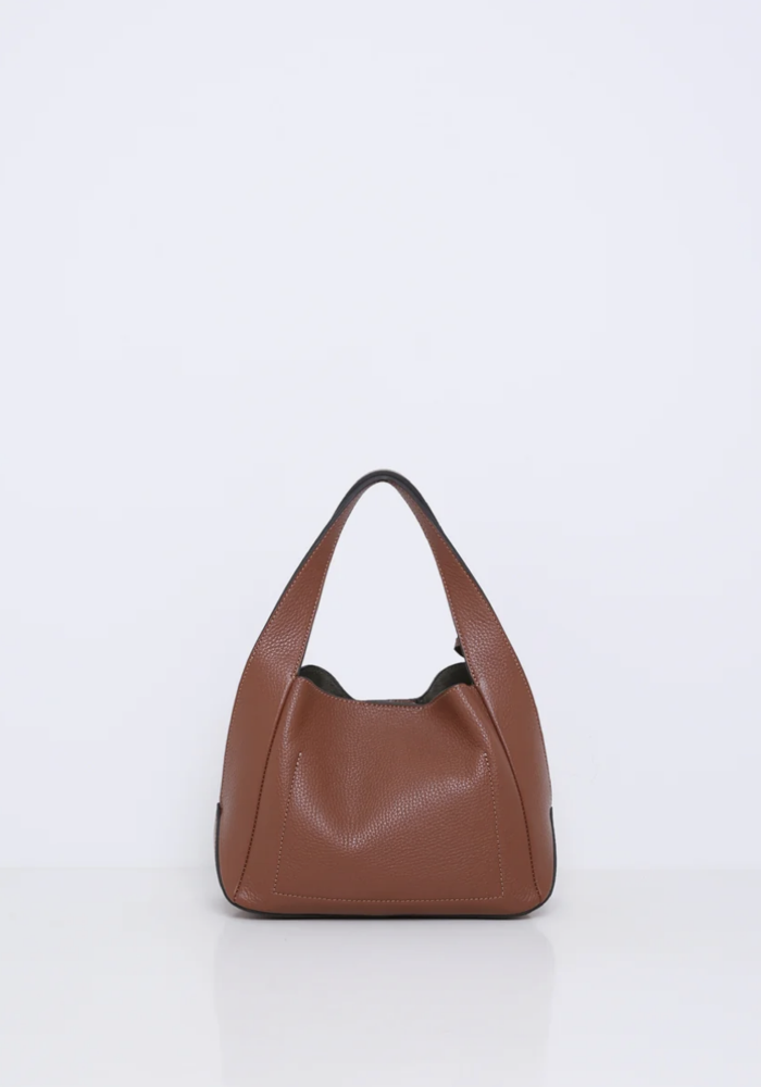 De Sophie van Smaak is een leren handtas. Het heeft twee stevige hengsels die verstelbaar zijn en een open bovenkant die gesloten kan worden met magneet.