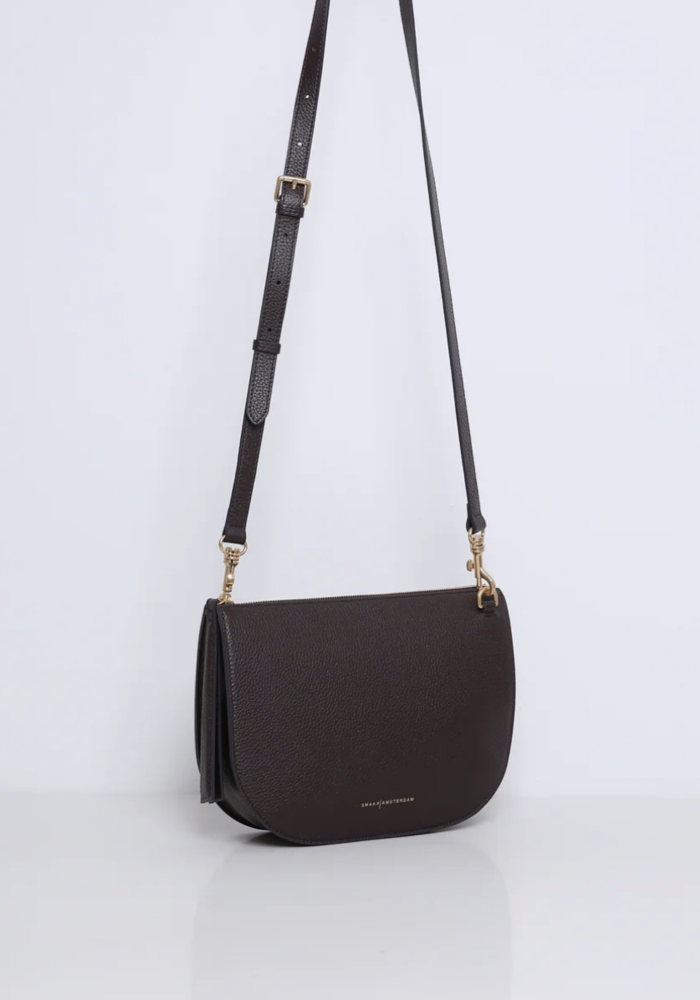De Silke bag van Smaak Amsterdam is een uniek model door de afwijkende halfronde vorm. De tas loopt iets breder door, waarmee deze functioneler wordt dan de traditionele halve maan tas. Door de slanke vorm draag je deze tas gemakkelijk.