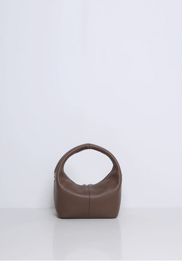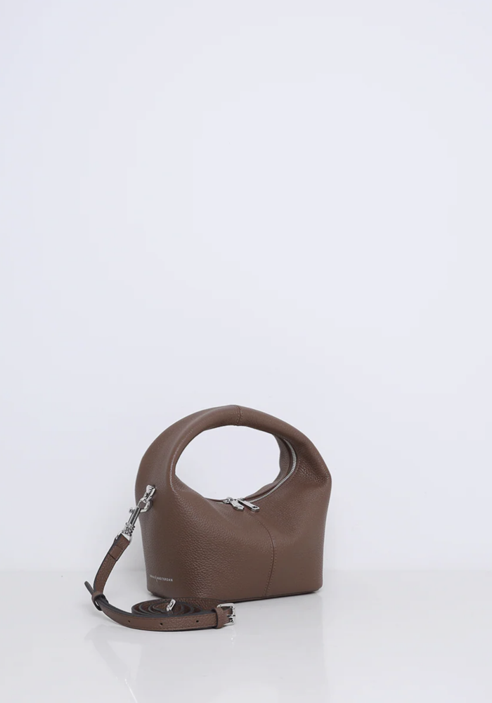 De Shelby bag van Smaak Amsterdam is een compacte mini tote bag. De tas valt op door haar ronde, halfronde vorm en het brede leren handvat. Het leer voelt soepel en licht aan, waardoor de tas comfortabel in de hand ligt. De tas wordt geleverd met bijpassend ceintuur.