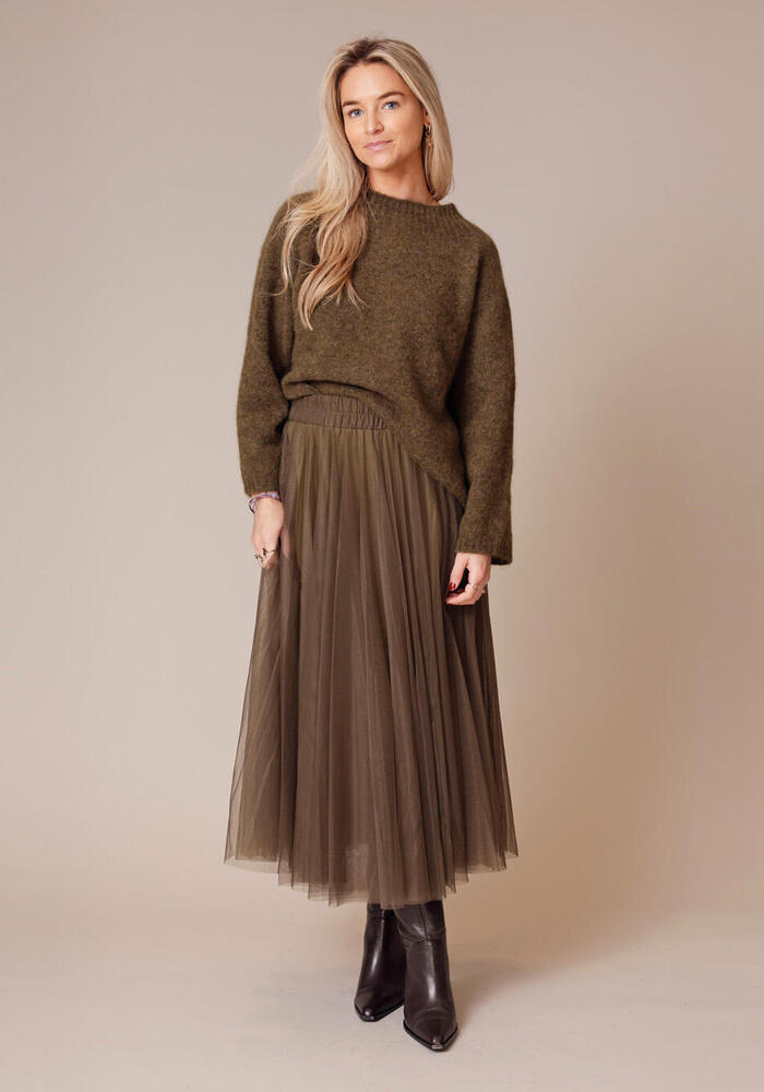 De Dark Moss rok is een eerbetoon aan de natuur. De diepgroene kleur ademt rust, balans en verfijning. Perfect te combineren met de bijpassende cardigan van Noman'sland of zelfs een blushroze cardigan voor een ton-sur-ton effect met karakter.