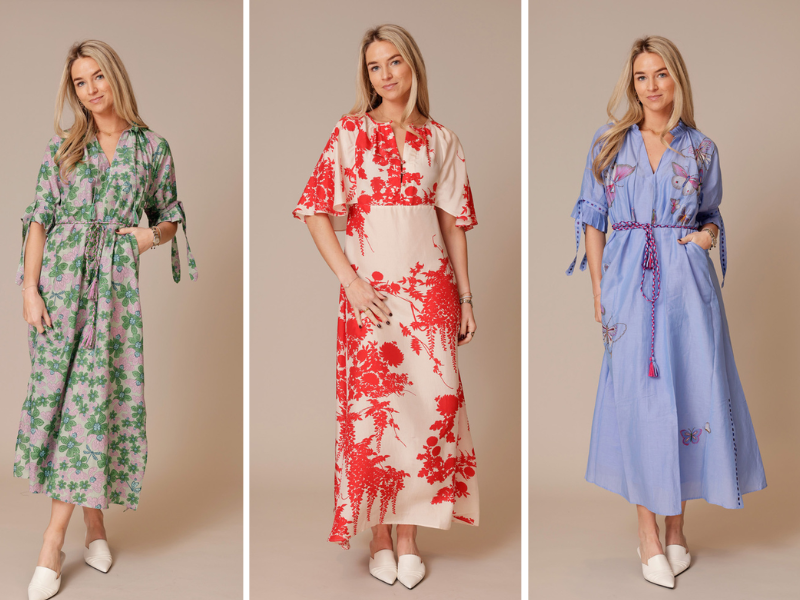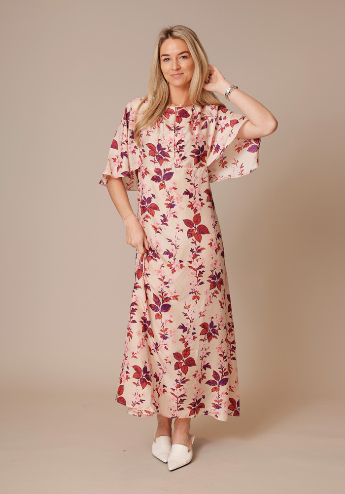 De Ornaete Kanak dress is luchtig, vrouwelijk en elegant. Het mooie licht getailleerde silhouet en de losse, sierlijke vlindermouwen geven de jurk een moeiteloze flow, terwijl het zachte bloemmotief voor een frisse, zomerse uitstraling zorgt.
