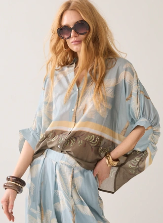 Summum - Palmtree blouse - Gracier blue
