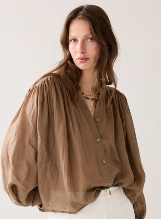Summum - Ramie blouse - Dark clay