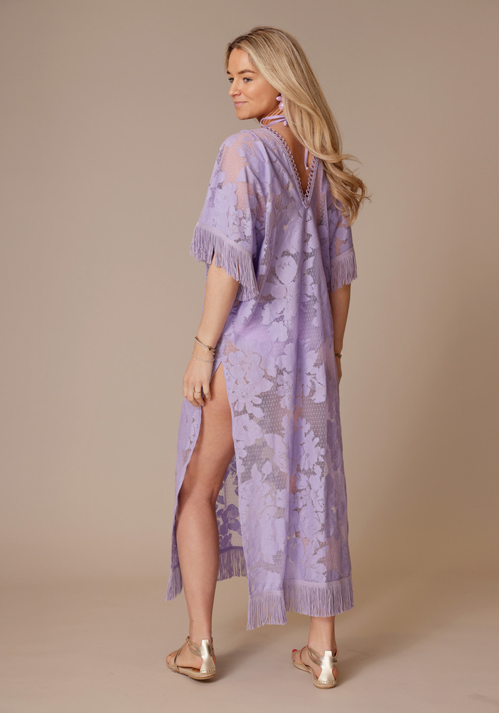 De caftano van Rafaela d’Angelo straalt een relaxte elegantie uit en is perfect als stijlvolle laag over badkleding. De vloeiende stof en verfijnde details zorgen voor een luchtige, luxe uitstraling.