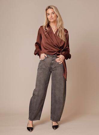 Yaya - Cropped satin blouse - Cloud Gray Purple