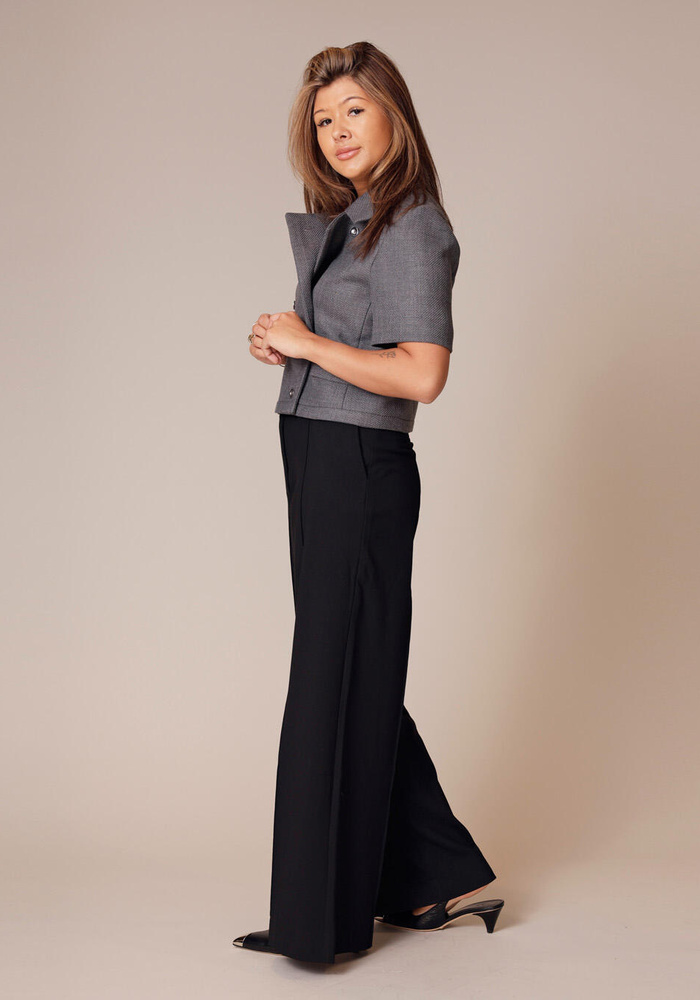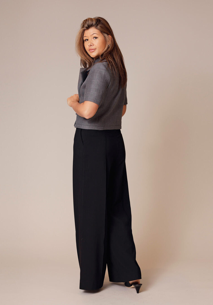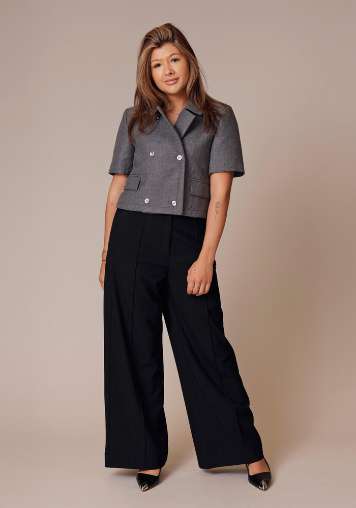 De Earl jacket van Herskind is een korte blazer met dubbele knoop. De blazer heeft korte mouwen en twee klepzakjes aan de voorzijde.