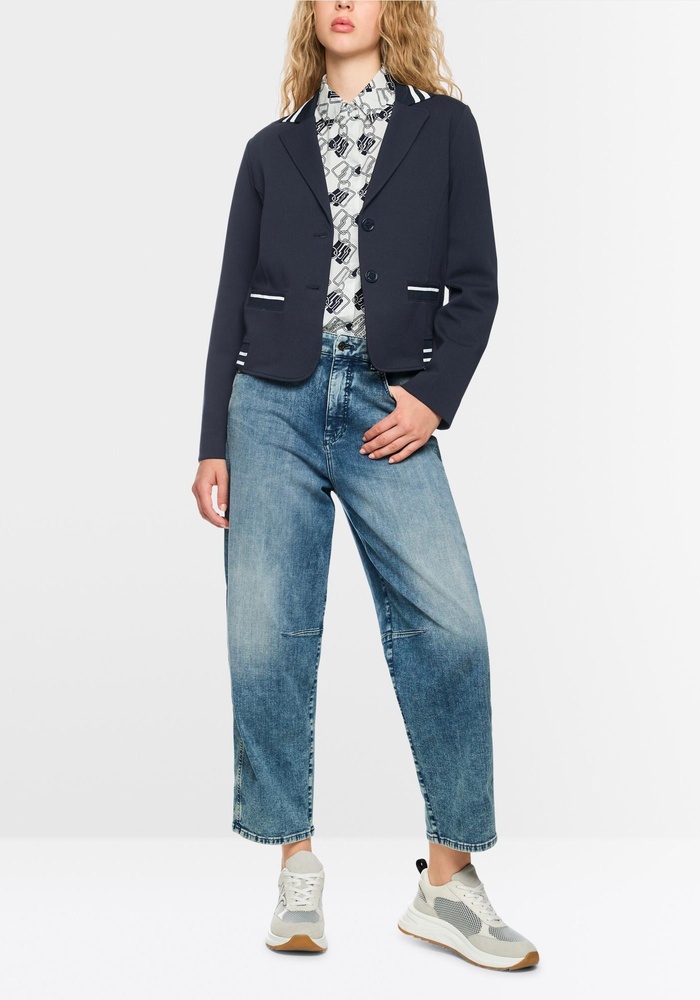 Deze blazer van Marccain is gemaakt van een comfortabele katoenmix. De blazer heeft een afgeronde zoom en kan met twee knopen worden gesloten.