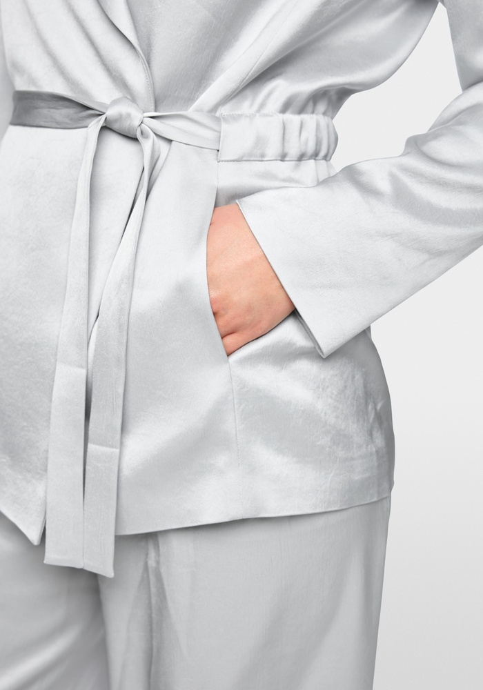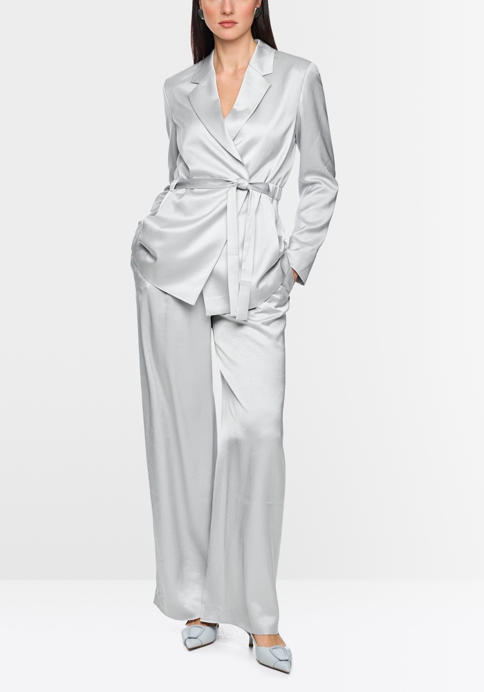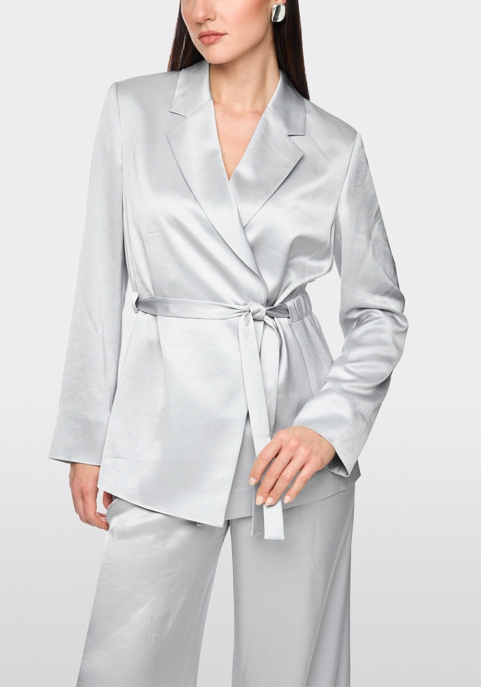 De elegante blazer van Marccain is gemaakt van een hoogwaardige materiaalmix en valt op door zijn subtiele wikkellook. De blazer wordt gesloten met een knoop en wordt aangevuld met een tailleriem met trekkoord. De gedefinieerde schouders zorgen voor een strak, modern silhouet. Ideaal voor een vrouwelijke, gestructureerde look.