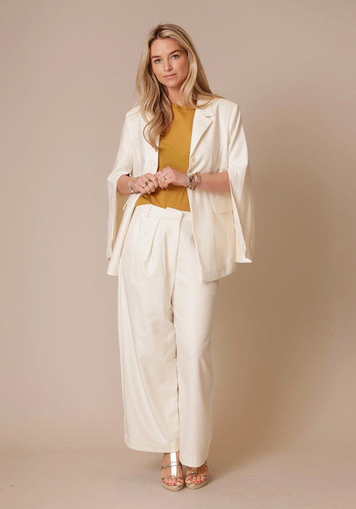 De Gitta Banko Allegra open sleeve blazer in de kleur ivory is een elegante blazer met open mouwen voor een moderne en stijlvolle look.