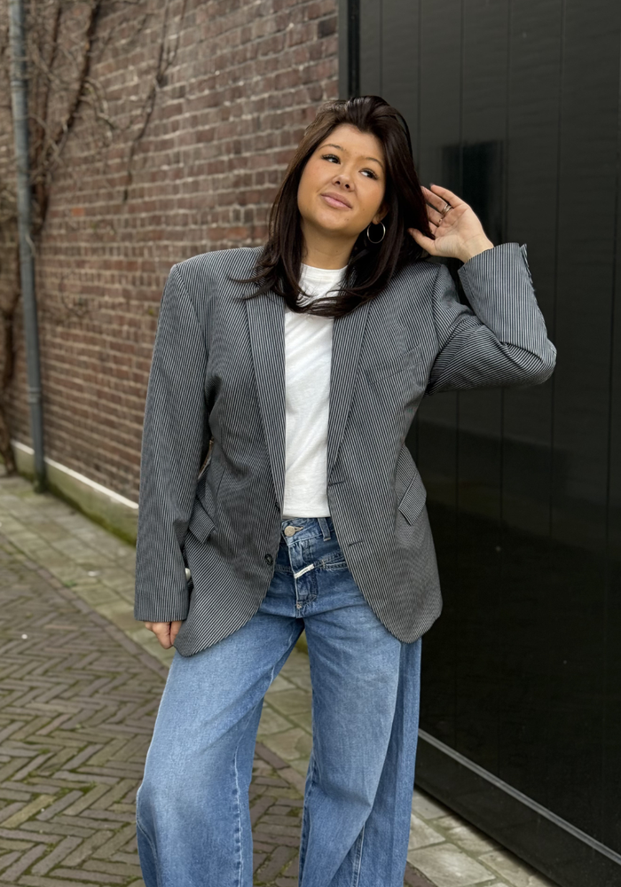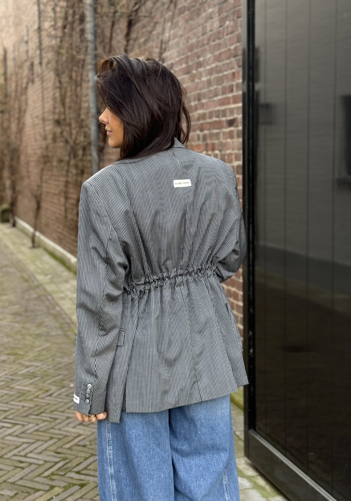 Deze Waist blazer van Club Fiore is een unieke vintage blazer. De blazer heeft een knoopsluiting en een elastische taille aan de achterzijde.