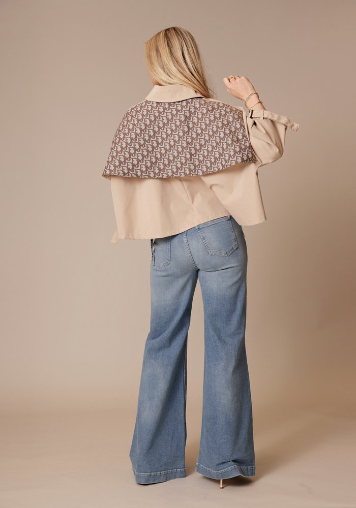 Deze cape blazer van Dior is een jasje met een korte pasvorm. Het jasje heeft een knoopsluiting aan de voorzijde en aan de achterzijde een beige dior print.