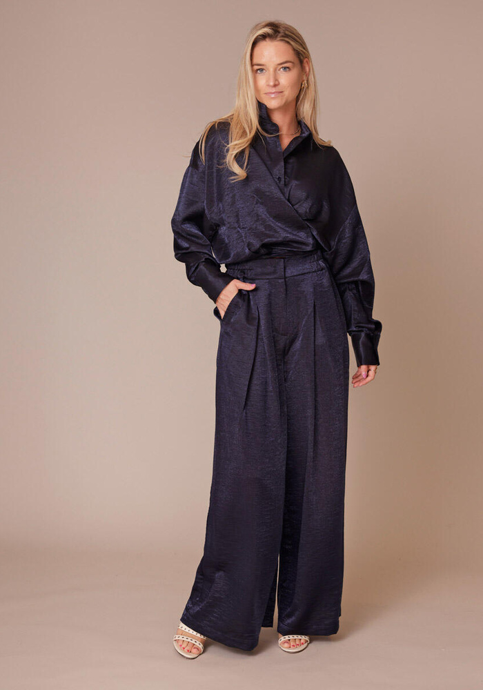 Jackie is 1,74 cm en draagt maat S. Deze satijnen wikkelblouse van Femme du Sud is een verfijnd item dat vrouwelijkheid en comfort perfect combineert. De wikkelstijl met knoopsluiting zorgt voor een flatterend silhouet en biedt tegelijkertijd een speelse twist. De brede manchetten geven de blouse een klassieke touch, terwijl de ronde afwerking aan de achterkant een zacht, vrouwelijk accent toevoegt. Gemaakt van glanzende satijnstof is deze blouse ideaal voor zowel een chique avondlook als een stijlvolle werkdag.