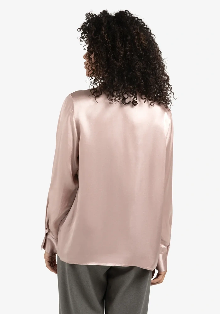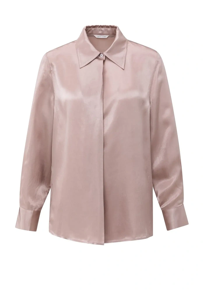 De satin blouse van Yaya is een satijnen blouse met klassieke kraag en verborgen knoopsluiting. De rechte pasvorm en zachte glans zorgen voor een verfijnde uitstraling.