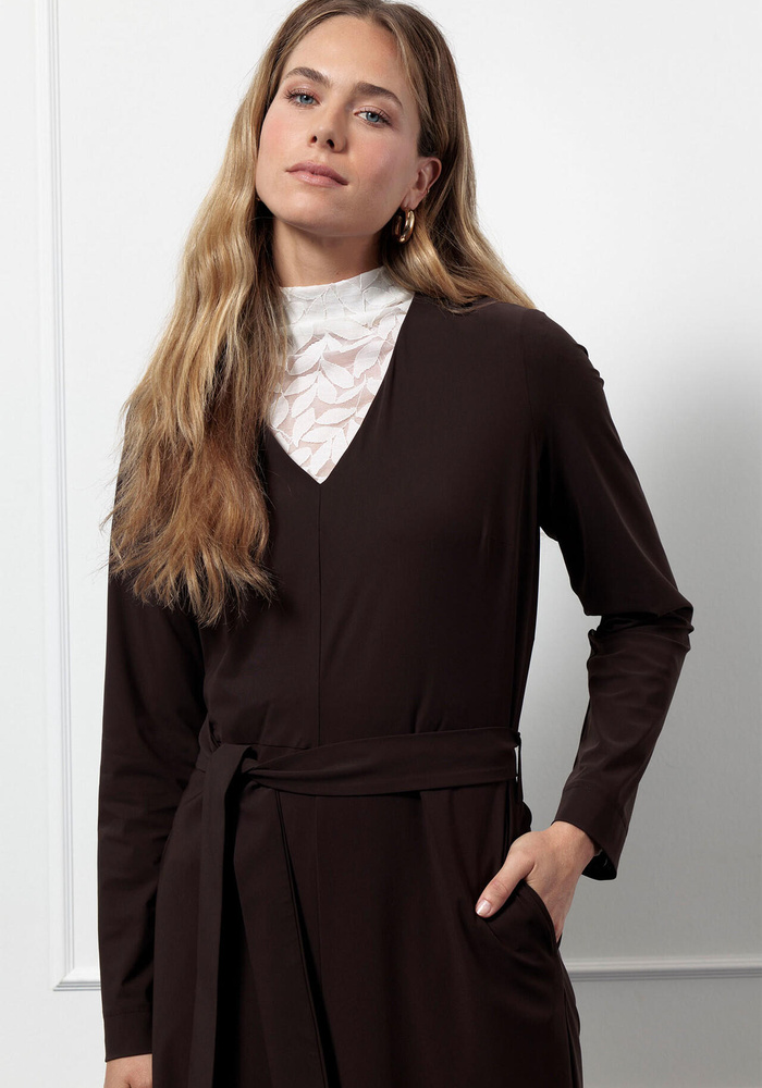 De Reagan lace top van Studio Anneloes is een kanten top met hoge hals. De top heeft een aansluitende pasvorm en heeft lange mouwen.