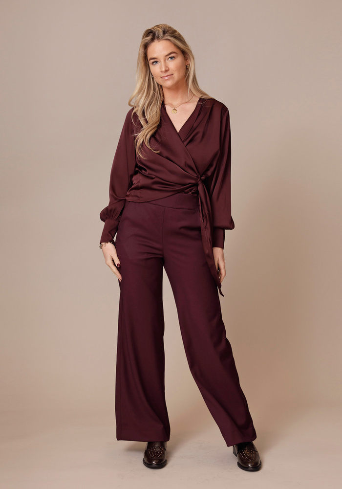 De Ludo blouse van Bardou is een wikkelblouse met glanzende afwerking. De blouse heeft lange mouwen en een v-hals.