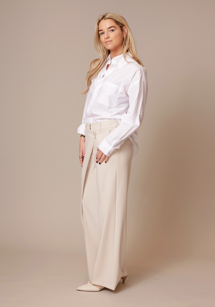 De Lorenzo shirt van Herskind is een oversized witte blouse. Ontworpen met een klassieke knoopsluiting en een extra zij-knoop voor veelzijdige styling. Draag het in het midden gesloten voor een ontspannen silhouet, of aan de zijkant vastgemaakt voor een meer gedefinieerde, vrouwelijke vorm.