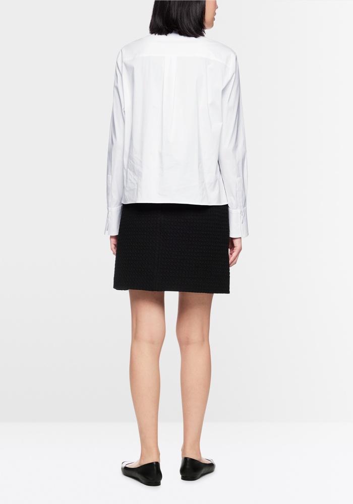 Dit blouseshirt van Marccain heeft een kleine opstaande kraag die je open of dicht kunt dragen. De goudkleurige knoop geeft ’m een subtiele, elegante touch. Dankzij de zachte katoenmix zit hij supercomfortabel.