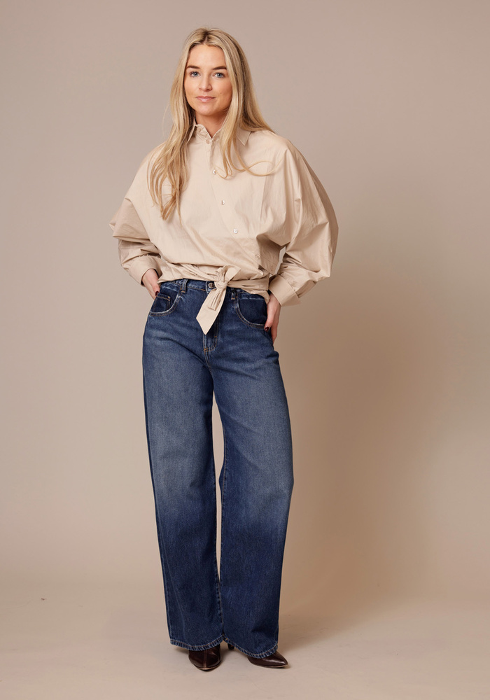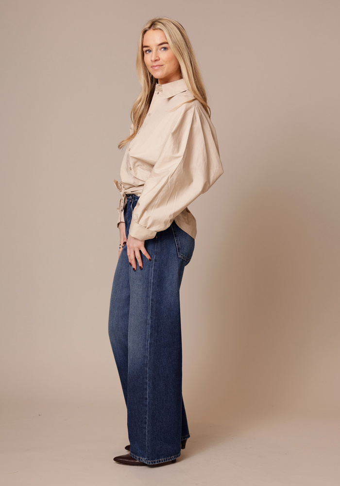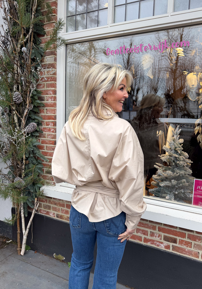De Beau blouse van Bardou is een unieke blazer waarbij de knoopjes schuin lopen. De blouse heeft een ceintuur koord die je aan de voorzijde of achterkant kan strikken.