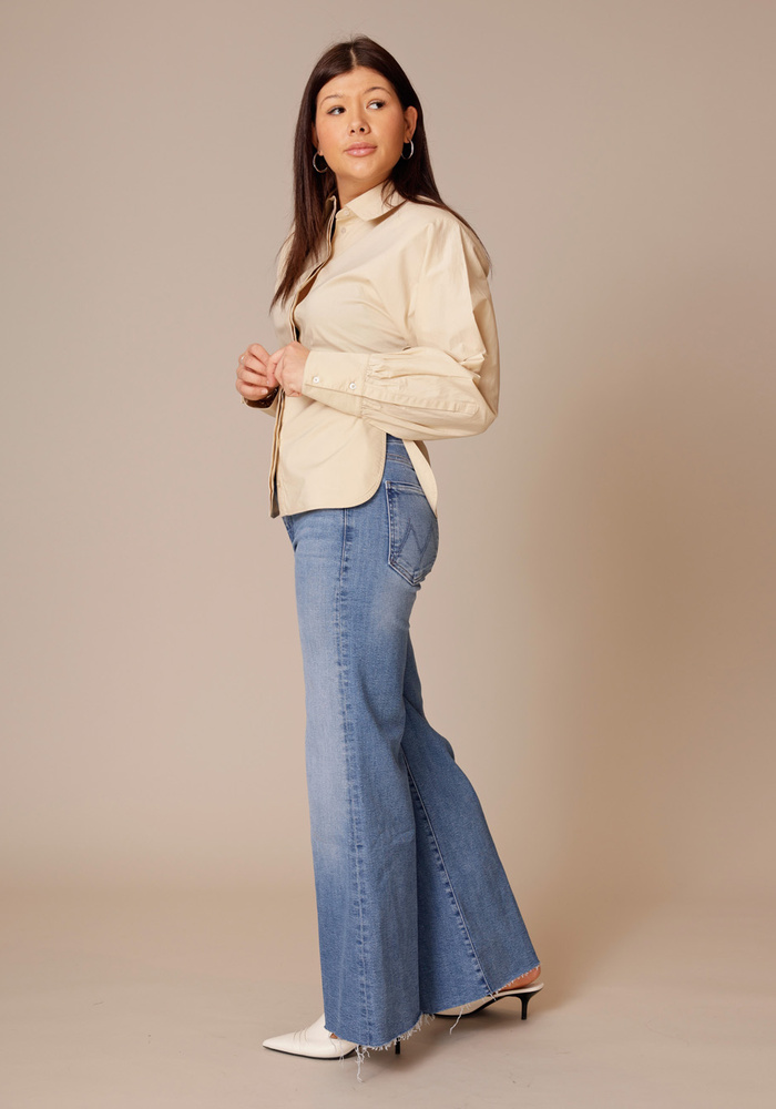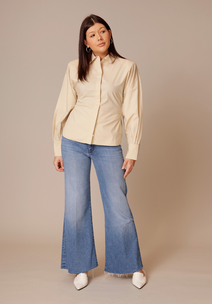 Deze IRO blouse in een warme beige tint heeft een elegante, licht getailleerde pasvorm die het silhouet mooi accentueert. De klassieke kraag en subtiel gepofte mouwen geven het ontwerp een moderne, vrouwelijke uitstraling. Perfect te combineren met zowel denim als een nette pantalon voor een moeiteloos stijlvolle look.