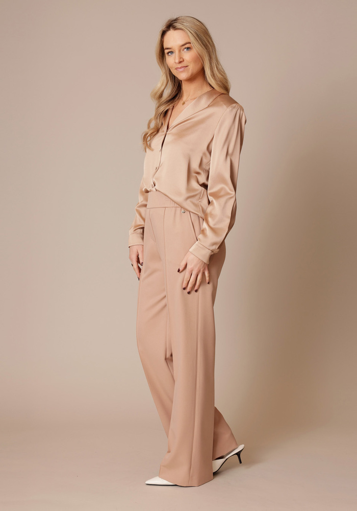Deze blouse van Marccain is uitgevoerd in een soepelvallende viscosekwaliteit en heeft een tijdloze uitstraling dankzij de elegante reverskraag en de volledige knoopsluiting. De licht geaccentueerde schouders zorgen voor een eigentijdse vorm en een verfijnd silhouet. Perfect te combineren voor een stijlvolle kantoorlook of een verzorgde outfit voor elke dag.