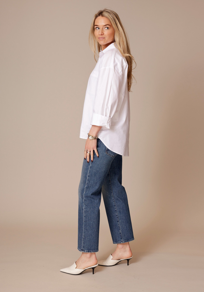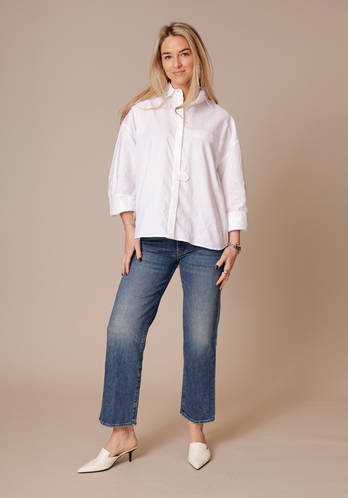 De Aura blouse van March23 is een tijdloze essential met een moderne, ontspannen uitstraling. Gemaakt van een soepel en ademend katoenmix materiaal, voelt de blouse comfortabel aan en is perfect voor dagelijks gebruik. Het rechte, licht oversized silhouet zorgt voor een nonchalante maar verzorgde look.