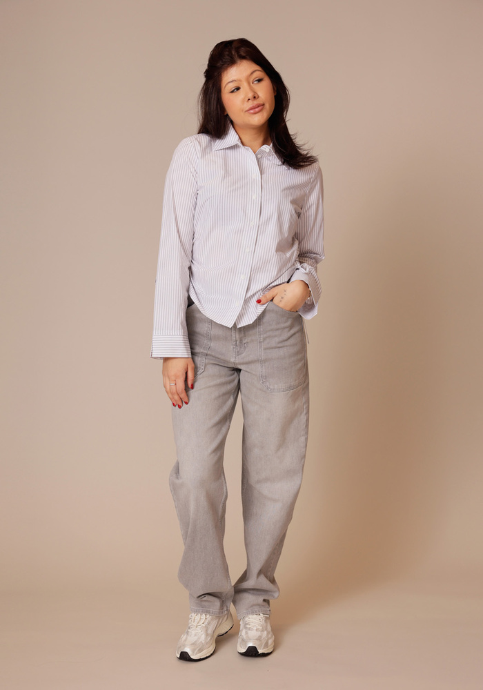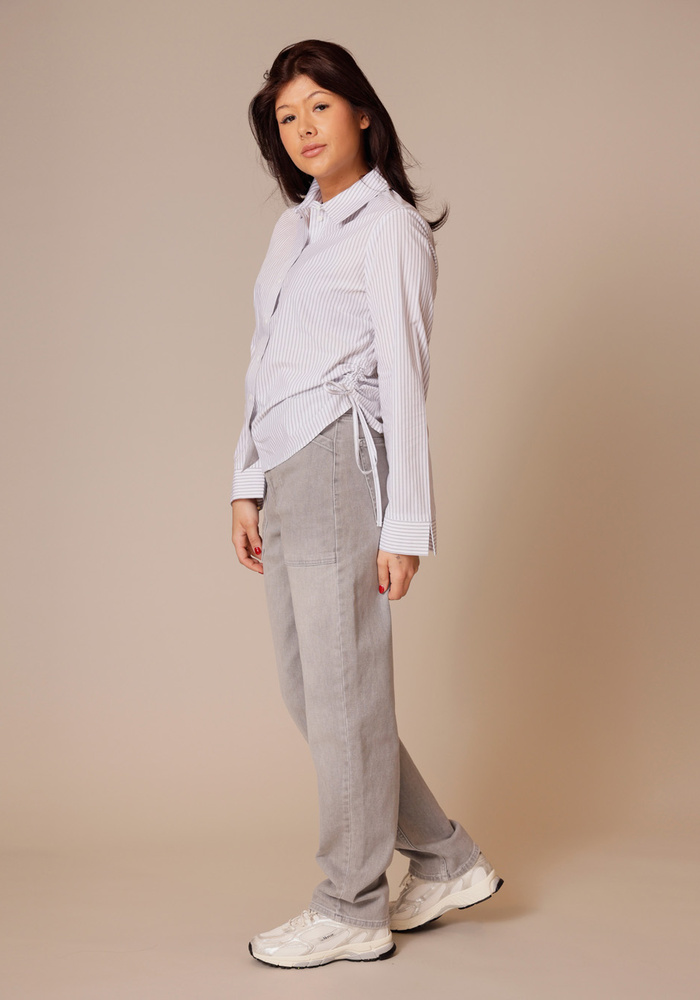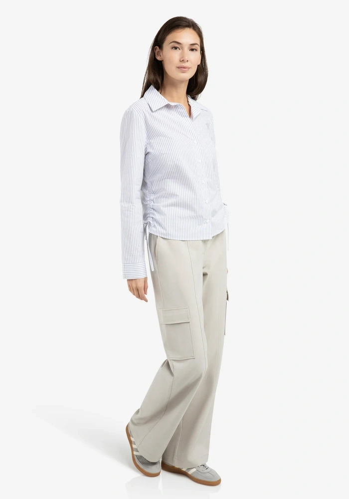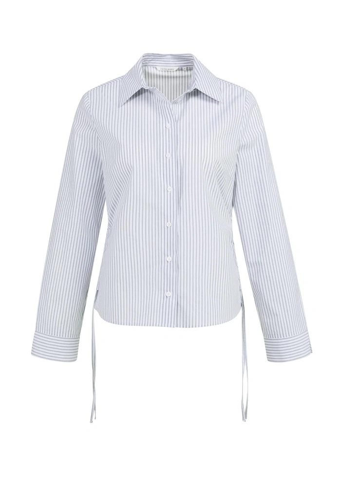 Deze gestreepte blouse van YAYA heeft een getailleerde pasvorm, een klassieke kraag en lange mouwen met brede manchetten. De strikkoorden aan de zijkant zorgen voor een verstelbare taille en geven de blouse een vrouwelijke uitstraling. De manchetten met een contrasterende streeprichting vormen een verfijnd detail. Een veelzijdig item dat perfect past bij zowel een zakelijke als een casual look.