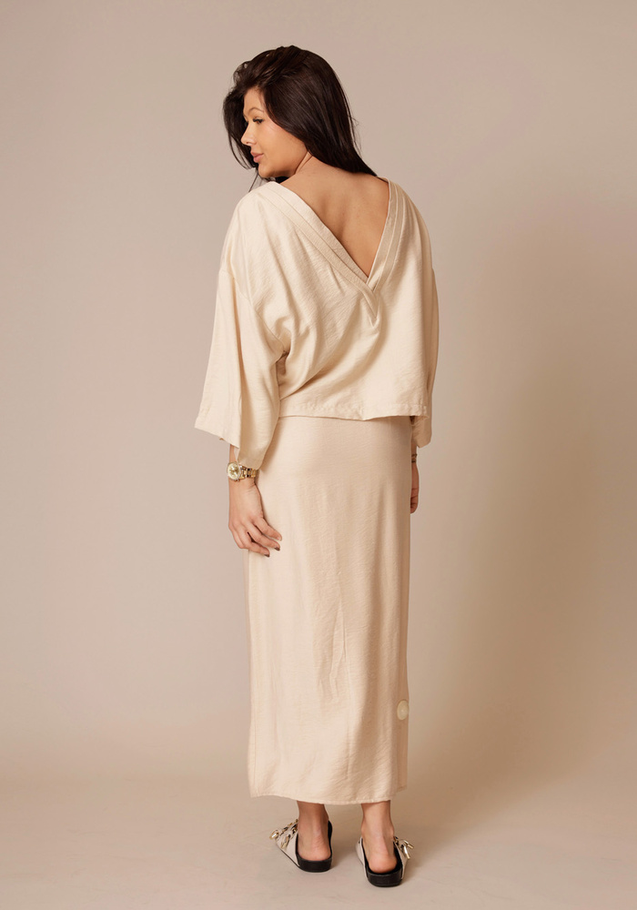De Delicate blouse van March23 is een soepelvallende blouse met glanzende afwerking. De blouse heeft een v-inkieping aan de achterzijde.