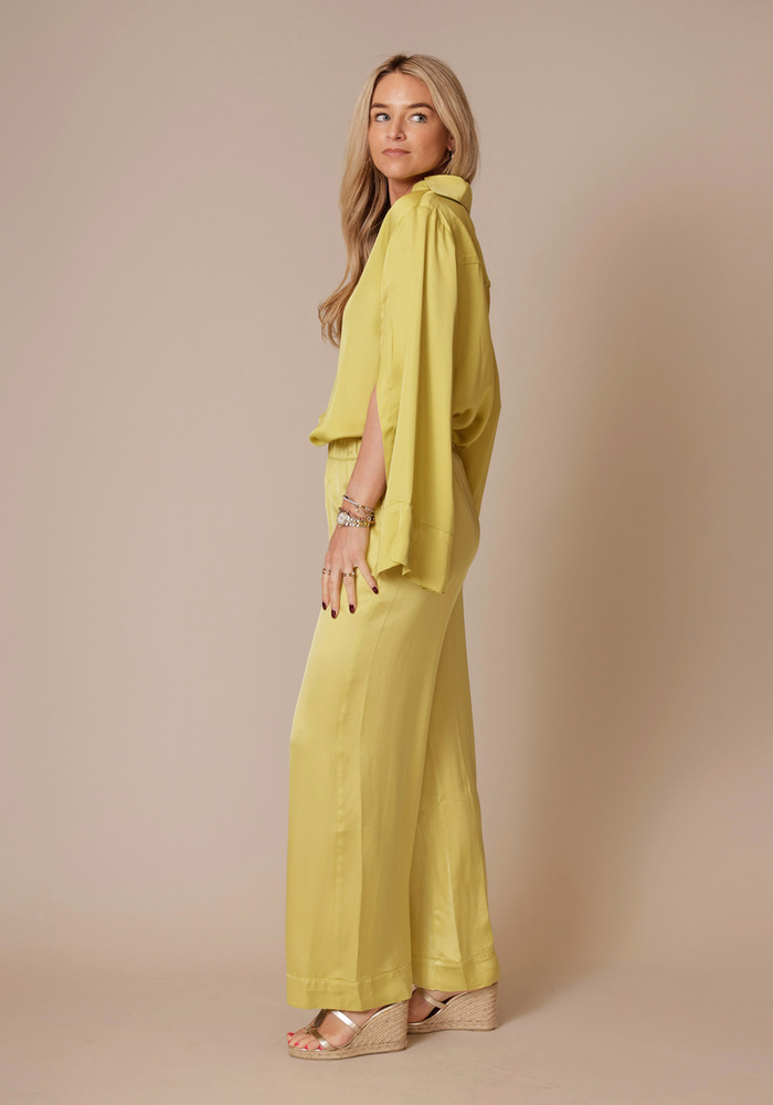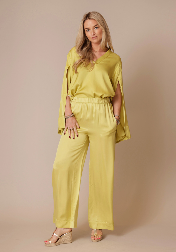 Deze elegante top van Nema heeft een luxueuze, zijdeachtige uitstraling en een verfijnde V-hals die zorgt voor een vrouwelijke en stijlvolle look. De soepelvallende stof en de wijde mouwen geven de blouse een chique en comfortabele pasvorm die perfect is voor zowel een feestelijke gelegenheid als een stijlvolle dagelijkse outfit.