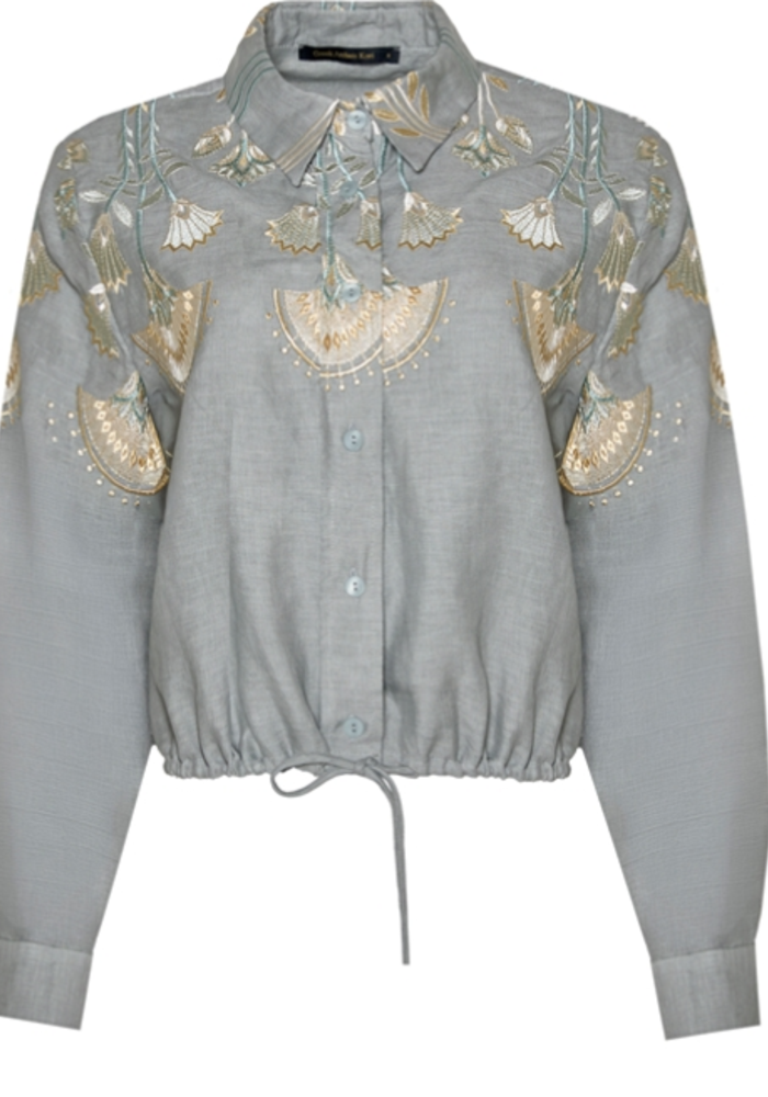 Greek Archaic Kori Papyrus classic shirt is een luchtige linnen blouse met manchetten en een verfijnd geborduurd bovenstuk. Het ontwerp straalt een zorgeloze, zonovergoten charme uit en combineert boho-patronen met een lichte en comfortabele uitstraling.