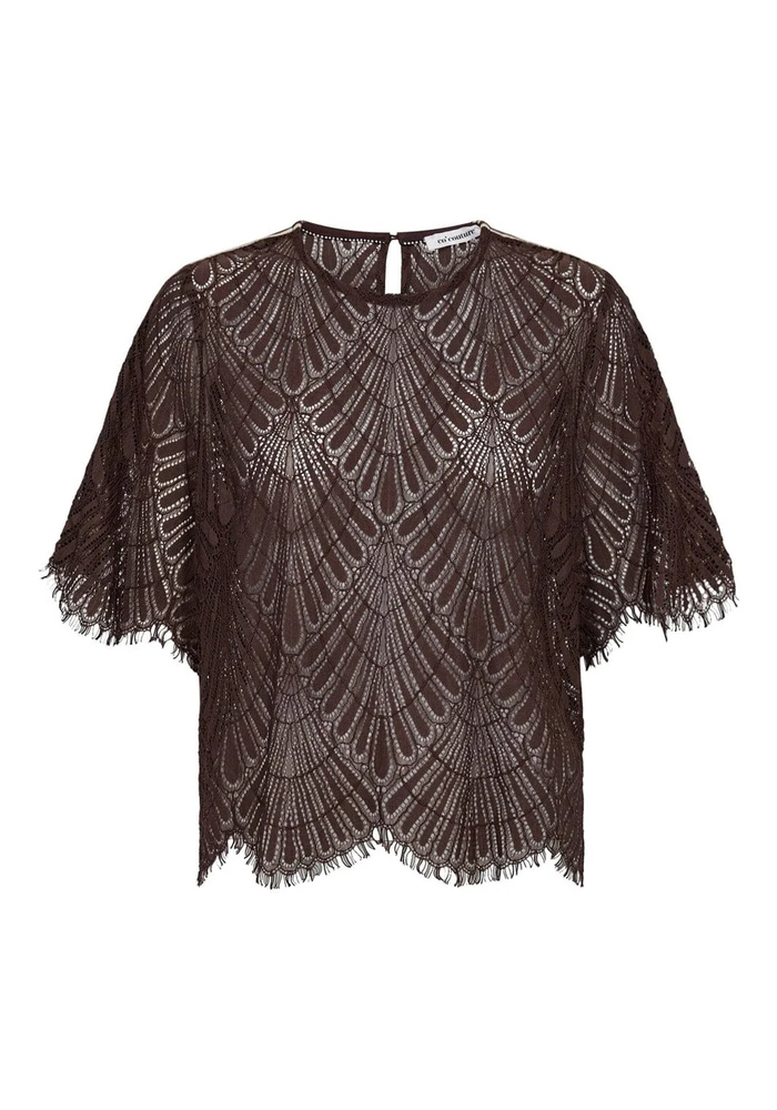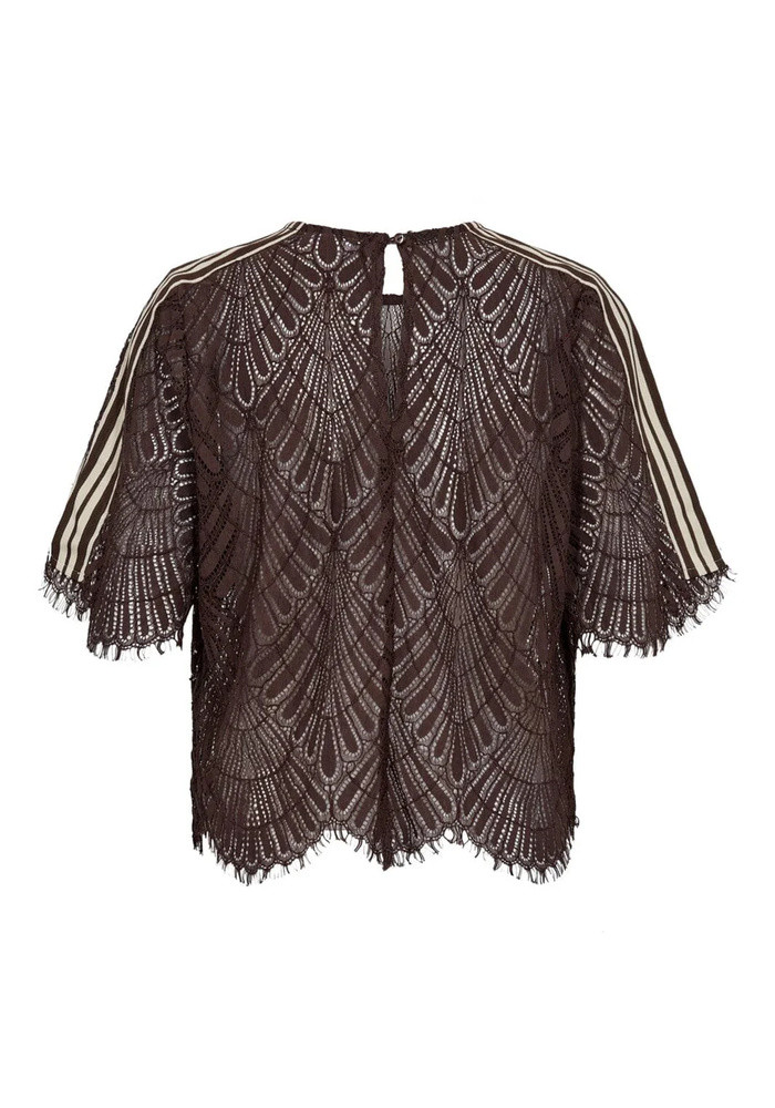 De Letti lace blouse van Co’Couture is een elegante blouse in Dark Brown. Het fijne kant en de diepe kleur geven de blouse een luxe en romantische uitstraling.
