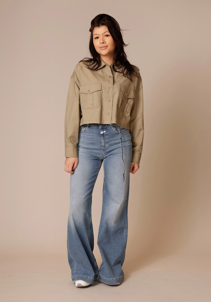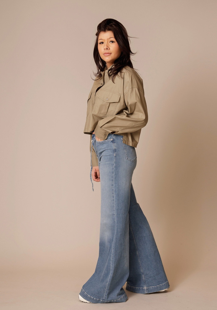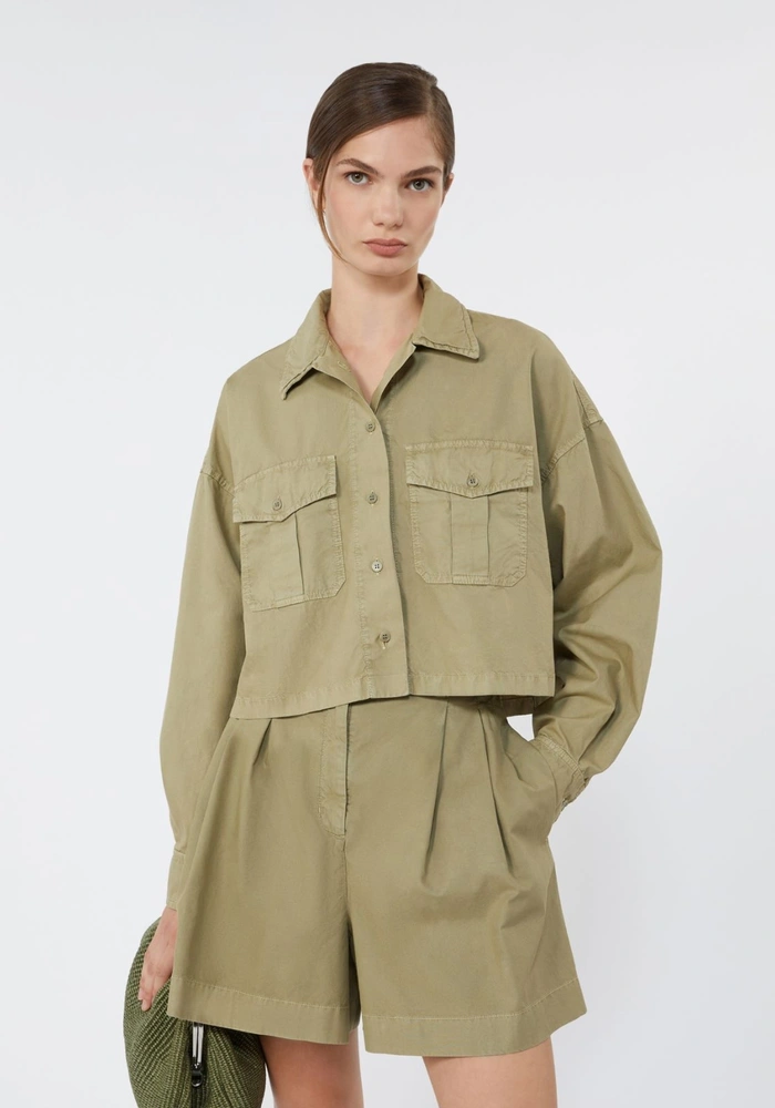 De Wkdaccenni blouse van Weekend Maxmara heeft verlaagde schouders, overhemdkraag en borstzakken met klep en knoop geeft het een stoer karakter. De asymmetrische zoom die achter iets langer valt en de subtiele zijsplitten zorgen voor een eigentijdse finishing touch.