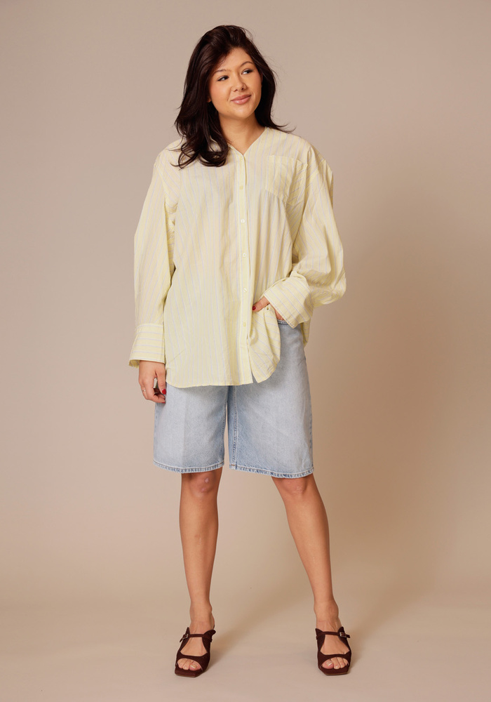 De Solci blouse van Mes Demoiselles is een losvallende blouse met een oversized pasvorm. De blouse heeft lange mouwen en een knoopsluiting aan de voorzijde.