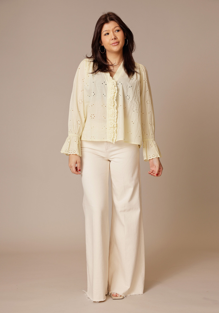 De Cayssa van Berenice is een mooie broderie blouse met lange mouwen met elastische manchetten.
