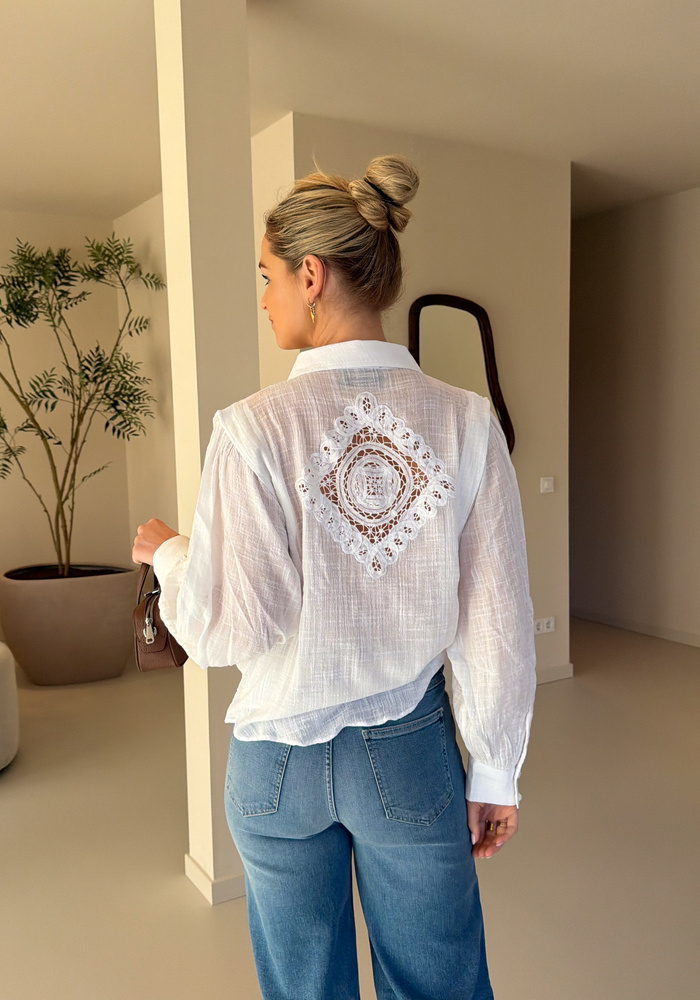 De Choria blouse van Berenice is een mooie witte blouse gemaakt van linnenachtige kwaliteit.