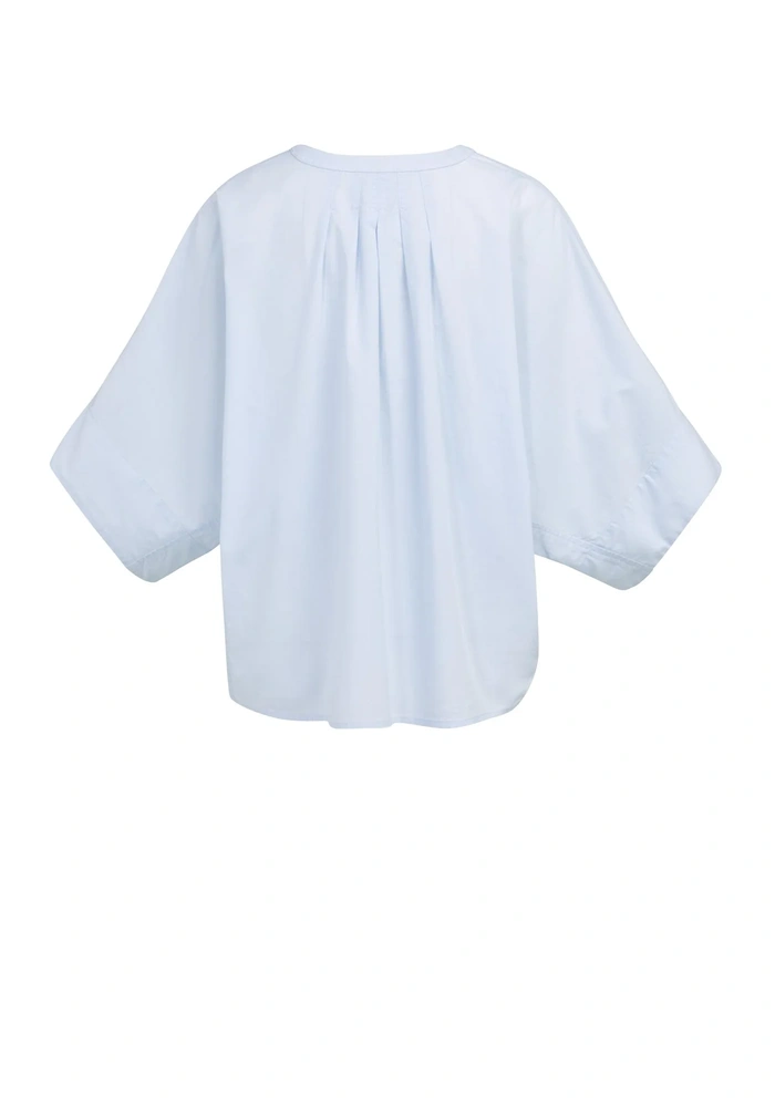 Deze luchtige blouse van Yaya heeft een oversized pasvorm en is ontworpen met brede vleermuismouwen die zorgen voor een ontspannen, moderne uitstraling. Gemaakt van een licht geweven katoenmix en afgewerkt met subtiele plooien bij de halslijn en op de rug, wat zorgt voor een mooie soepele valling. De blouse sluit met knopen en heeft een ronde hals.