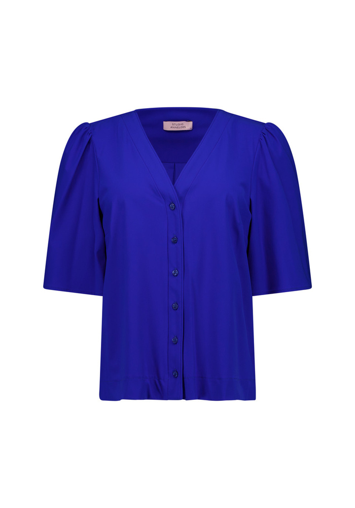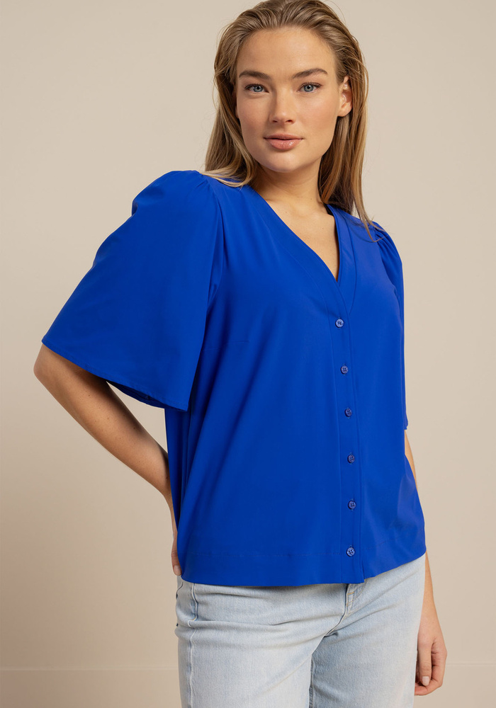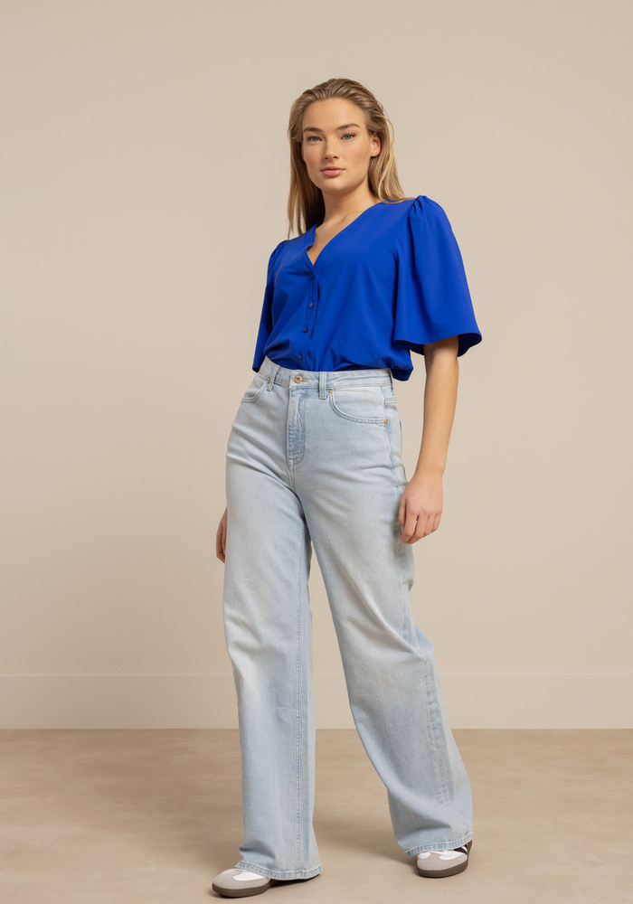 De Axel blouse van Studio Anneloes is een elegante en luchtige blouse in de krachtige kleur Electric Blue. Dankzij de soepele Medium Travelstof, regular fit en vrouwelijke details zoals de V-hals en vlindermouwen heeft het item een comfortabele en verfijnde uitstraling.