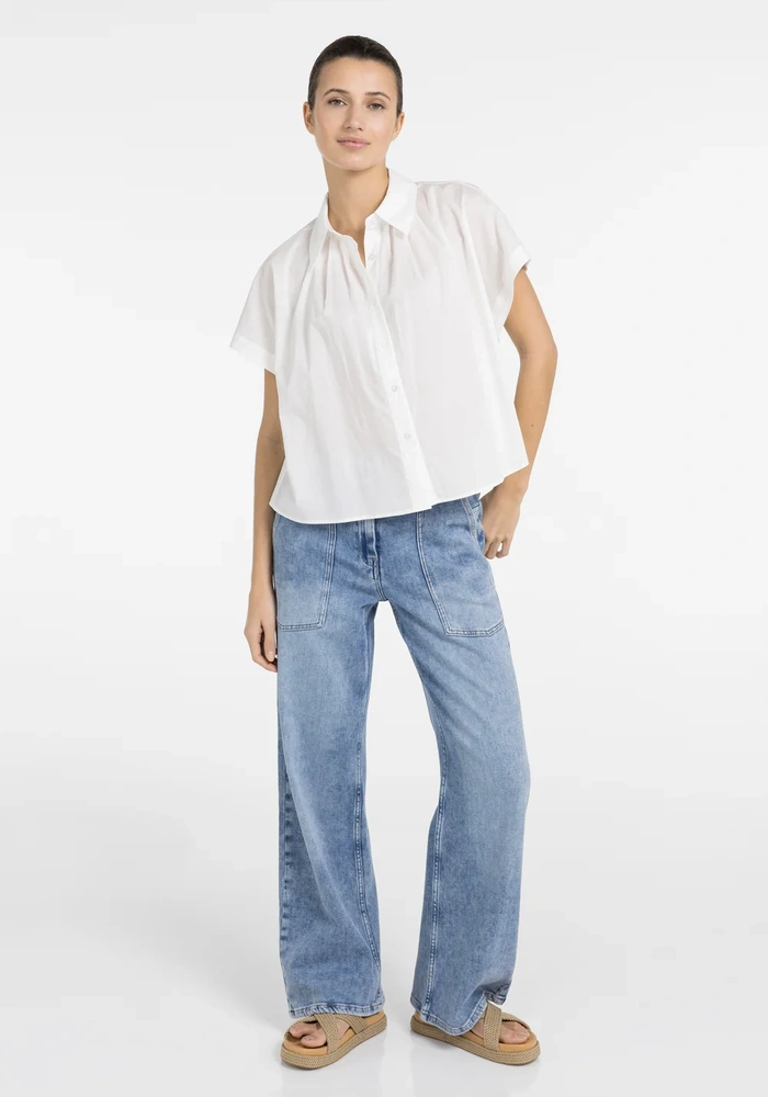 Deze mouwloze blouse van Yaya is gemaakt van een gladde geweven stof en heeft een relaxte pasvorm. Ontworpen met een klassieke kraag, knoopsluiting en verfijnde plooidetails aan de achterkant. De knoopdetails langs de zijnaden voegen een speelse touch toe.