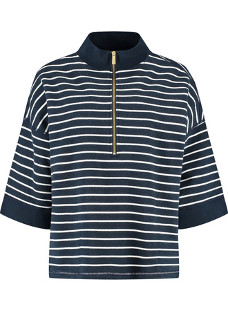 Deblon - Daan striped half zip sweater - Navy off white