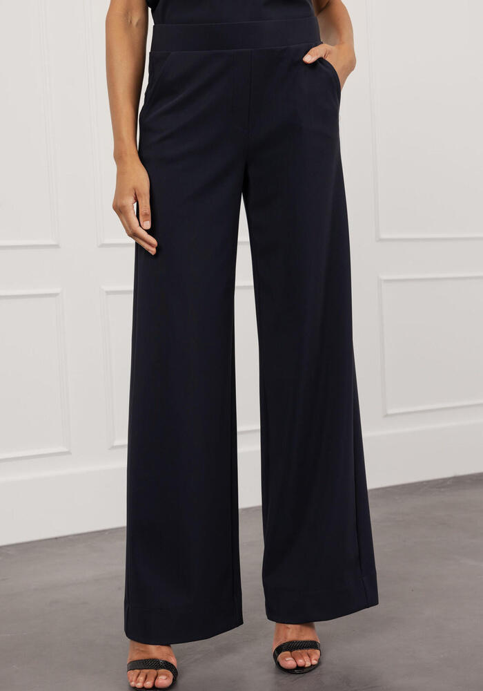 De Lexie bonded trouser van Studio Anneloes heeft een elastieke tailleband met steekzakken voor en paspelzakken achter. Het is een wide fit en de trouser heeft een binnnenbeenlengte van 83 cm.