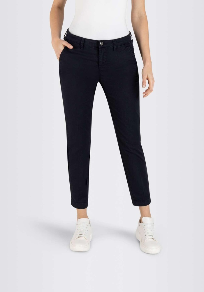 Deze Chino turn up jeans van Mac is een midwaist broek met een rechte pasvorm. De broek is voor zien van twee zakken aan de voorzijden en heeft een rits - knoop sluiting.