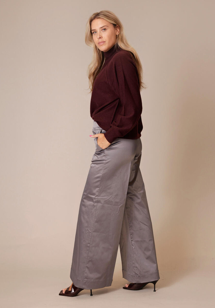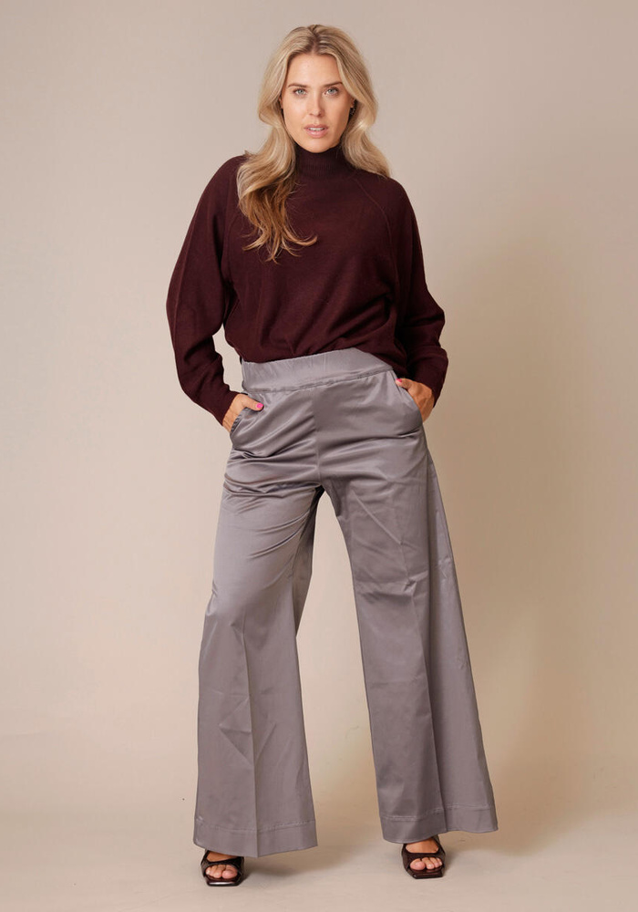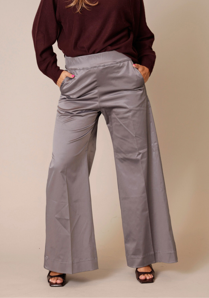 De Super Woody Shiny Cotton van Sea Me Happy is een stijlvolle broek met een relaxte pasvorm en een subtiele glans. De elastische tailleband en wijde pijpen zorgen voor een comfortabele en flatterende look. Gemaakt van lichtgewicht katoen, perfect voor een moeiteloze en trendy uitstraling.
