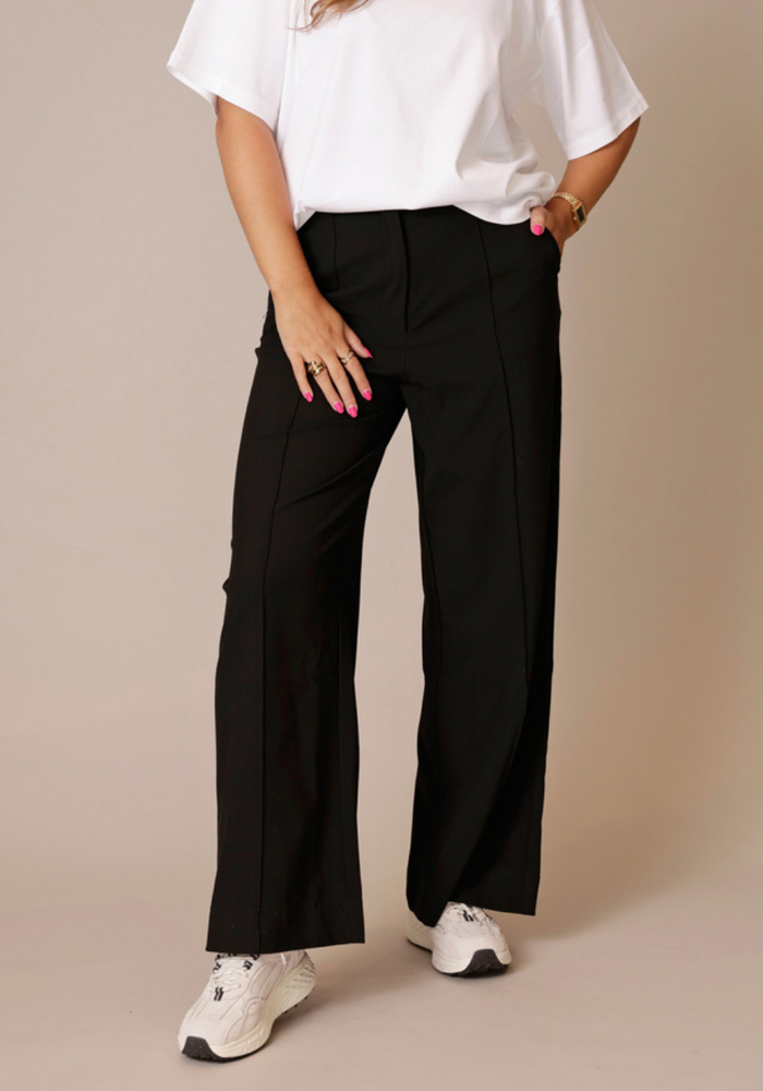 De Kimberly pants is een klassieke, middelhoge, lange broek met een gestikte vouwlijn aan de voorkant voor een op maat gemaakte look.