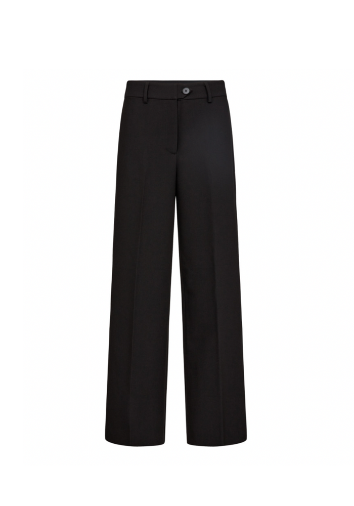De Vola long wide pants is een wijdvallende pantalon. De broek valt hoog in de taille en heeft een knoop -en ritssluiting.