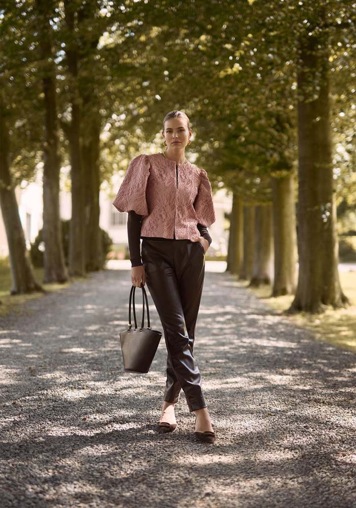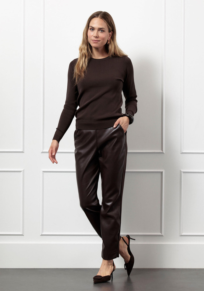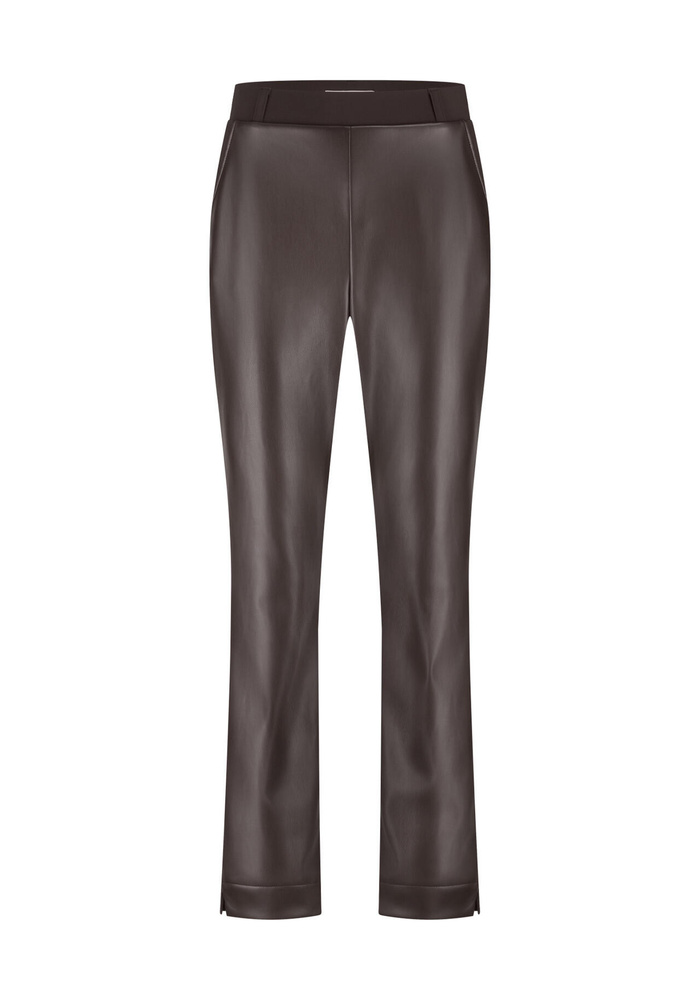 De Anne faux leather trousers van Studio Anneloes is een broek die stoer en stijlvol combineert. De diepe kleur Espresso en de mix van faux leather aan de voorkant en travelstof aan de achterkant maken dit item modern én comfortabel.