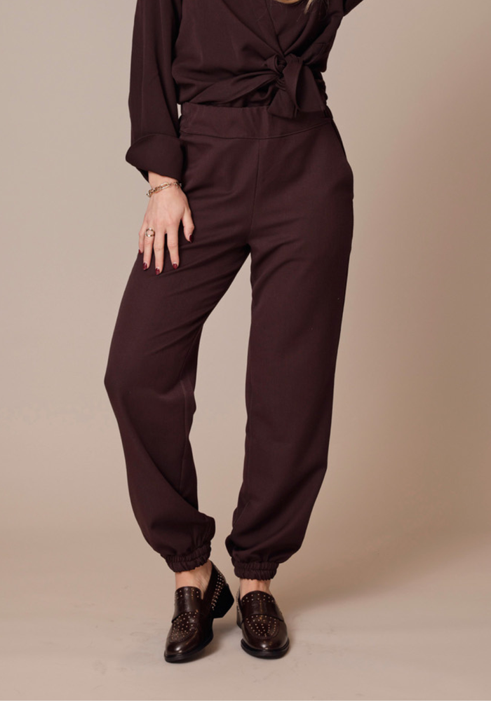 De Erina pant van Bardou heeft een elastieke tailleband en elastische boorden aan de onderkant van de broek. De Erina heeft steekzakken en leuk te combineren met de Silke blouse voor de complete look.